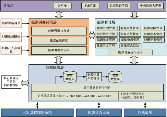 采用自動化、信息化技術(shù)和集中管理模式,對企業(yè)能源系統(tǒng)的生產(chǎn)、輸配和消耗環(huán)節(jié)實(shí)施集中扁平化的動態(tài)監(jiān)控和數(shù)字化管理,改進(jìn)和優(yōu)化能源平衡,實(shí)現(xiàn)系統(tǒng)性節(jié)能降耗的管控一體化。