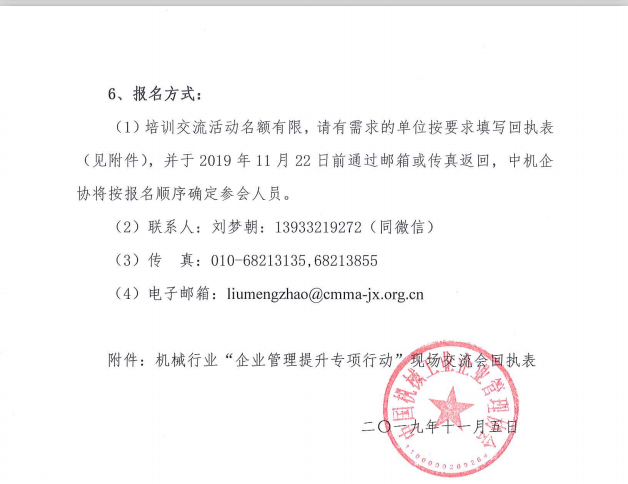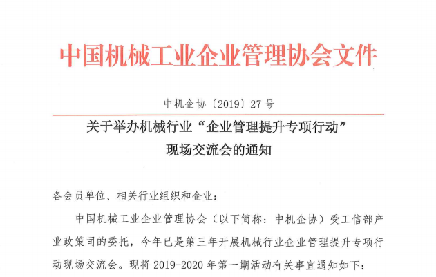 機(jī)械行業(yè)“企業(yè)管理提升專項(xiàng)行動(dòng)”現(xiàn)場(chǎng)交流會(huì)通知--中機(jī)企協(xié)[2019]27號(hào).pdf