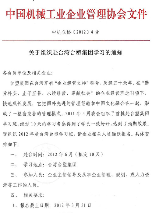 關(guān)于組織赴臺灣臺塑集團(tuán)學(xué)習(xí)的通知