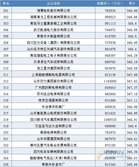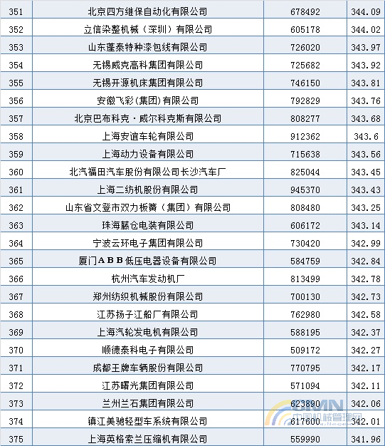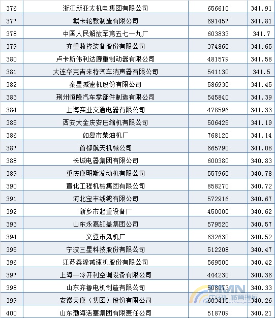 2004年中國機(jī)械500強(qiáng)排名(301-400)
