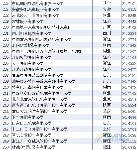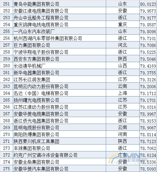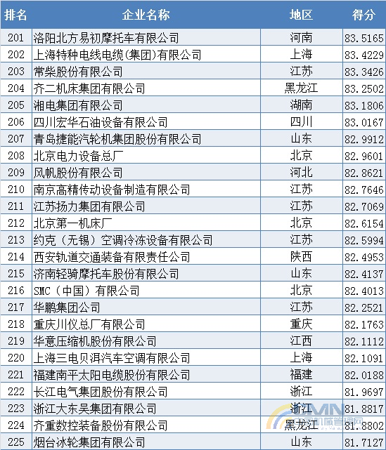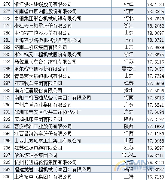 2008年中國(guó)機(jī)械500強(qiáng)排名(201-300)