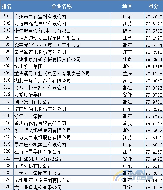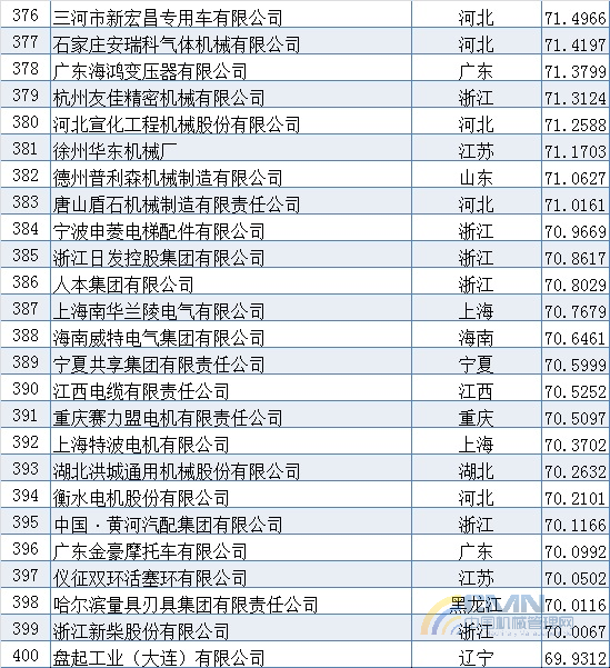 2008年中國機(jī)械500強(qiáng)排名(301-400)