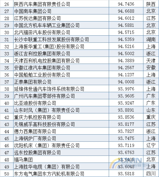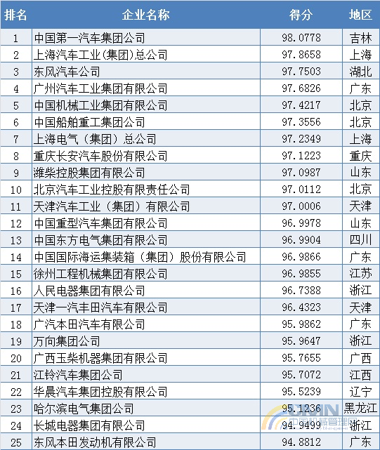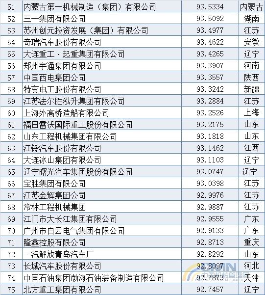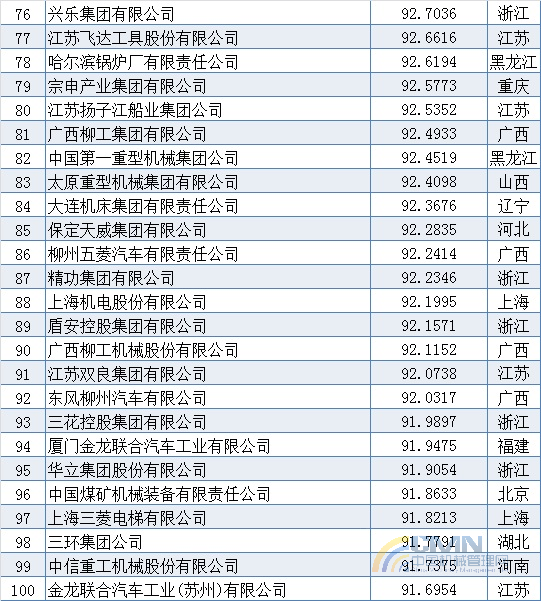 2010年中國機(jī)械500強(qiáng)排名(1-100)