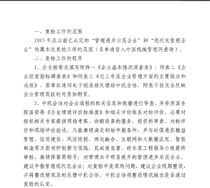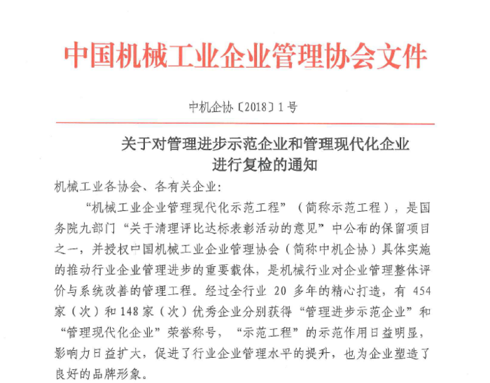 關于對管理進步示范企業(yè)和現代化管理企業(yè)進行復檢的通知