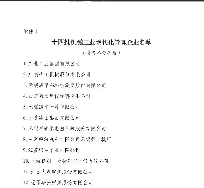 關(guān)于公布第十四批機(jī)械工業(yè)現(xiàn)代化管理企業(yè)、第二十一批管理進(jìn)步示范企業(yè)的決定