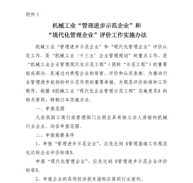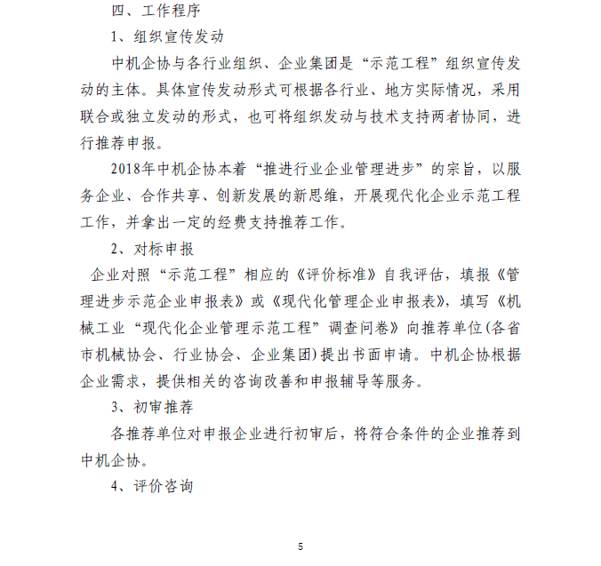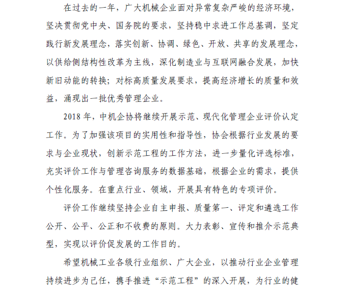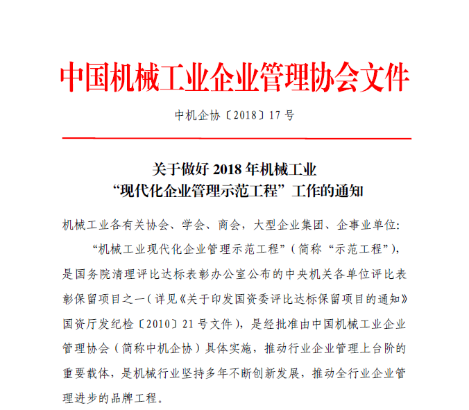 關于做好2018年機械工業(yè)“現代化企業(yè)管理示范工程”工作的通知