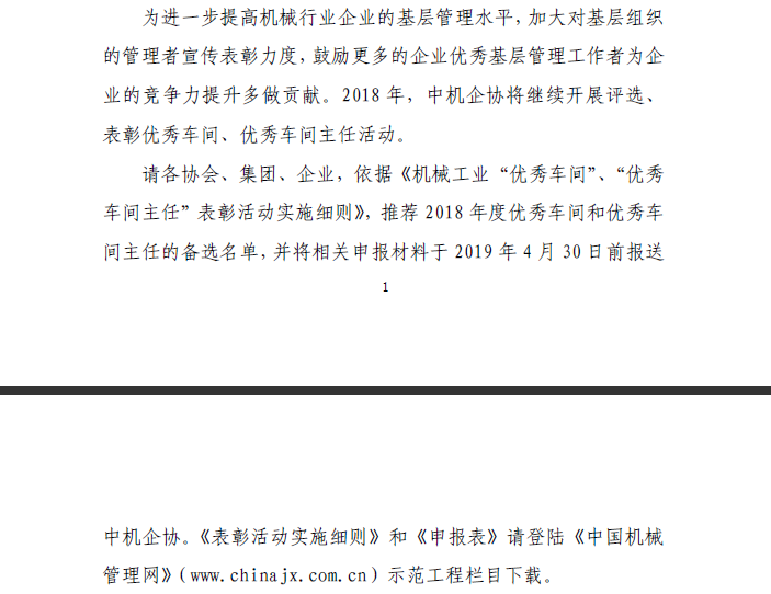 (四)中機(jī)企協(xié)每年將向榮獲優(yōu)秀車間和優(yōu)秀車間主任稱號的集體和個(gè)人進(jìn)行授牌表彰。