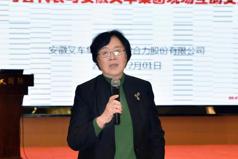 中機企協常務副理事長李玲在機械行業(yè)“向企業(yè)送管理” 現場交流活動--安徽叉車集團互動交流會上發(fā)言