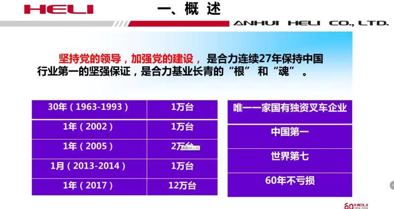 從合力的交流中歸納該企業(yè)的管理特點:一是系統(tǒng)性,在戰(zhàn)略管理、國際化經營、兩化融合、企業(yè)運營、人力資源管理等方面全面開展,特別是精益管理、卓越績效管理方面很有成效。二是持續(xù)性,咬定青山不放松、持之以恒抓管理,近10年對精益管理常抓不懈,連續(xù)多年開展卓越績效、人才隊伍建設,確保企業(yè)質量效益穩(wěn)步提升,取得優(yōu)異成績。三是成效性,合力集團主要經濟指標經連續(xù)27年位居中國叉車行業(yè)第一位,2011年至今始終名列世界八強。