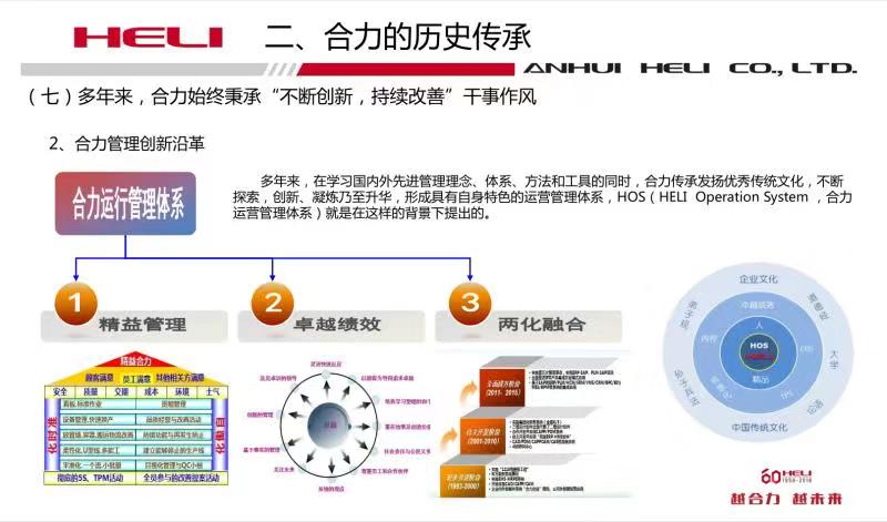 合力副總經理都云飛介紹了卓越績效模式導入、推進、成效和體會;集團政治處處長金世林介紹了黨建與經營融合的探索與實踐;研發(fā)部副部長畢勝介紹了IPD(集成產品開發(fā))管理體系建設;信息化部副部長張紀九介紹了集團工業(yè)互聯網建設;合力合肥鑄鍛廠廠長解明國介紹了創(chuàng)新引領傳統(tǒng)產業(yè)轉型升級之路;合力精益辦主任、企管部副部長陳軍介紹了企業(yè)基于方針目標管理體系的合力精益實踐。