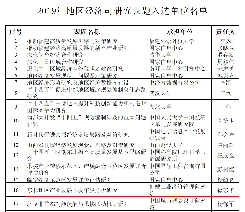 附件:2019年地區(qū)經(jīng)濟(jì)司研究課題入選單位公告