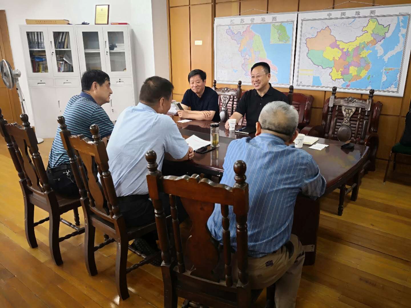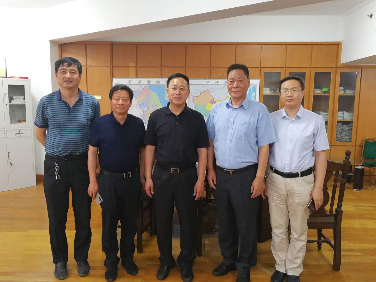 于忠赤會長(中)、楊一平常務副會長(左二)、楊征秘書長(右一)與江蘇省機械行業(yè)協(xié)會李春江會長(右二)、王云秘書長(左一)合影