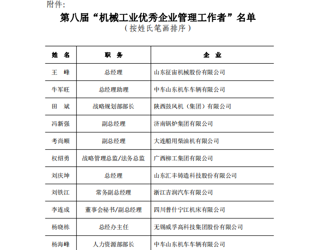 關(guān)于表彰第八屆機(jī)械工業(yè)優(yōu)秀企業(yè)管理工作者的決定