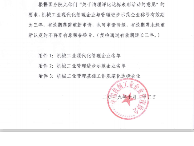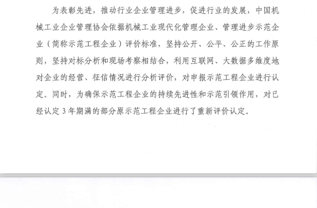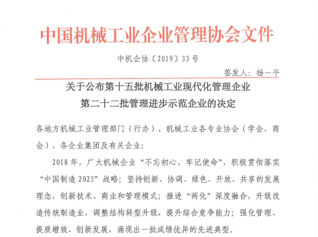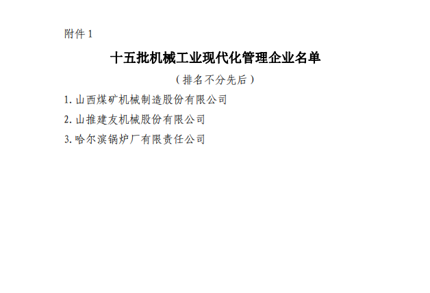 關(guān)于公布第15批機(jī)械工業(yè)現(xiàn)代化管理企業(yè)、第22批管理進(jìn)步示范企業(yè)的決定