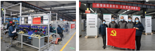 “我是黨員,我先上。”在此次參加突擊生產的人員中有30余名黨員同志,楊世祺、徐然、馬衛(wèi)、陳紀平、馬正慧等同志帶頭沖在一線,在交貨計劃、方案制度、物資籌備、人員安排、生產進度、檢驗發(fā)貨等各項工作中,以實際行動踐行黨員使命,讓黨旗在防控疫情面前,更加鮮紅!切實發(fā)揚了黨員先鋒模范作用,沖在了抗擊疫情電氣產品生產任務的第一線。